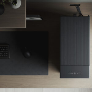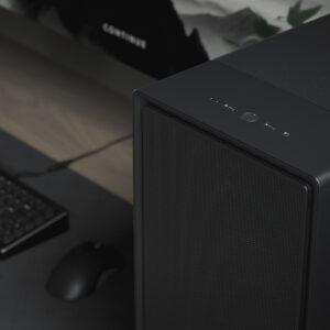 Außen verleihen ein lasergraviertes Aluminium‑Logo, eine Textil-Lasche und fein strukturierte Mesh-Panels dem Gehäuse eine elegante, klare Optik. Auch das durchdachte Layout des Innenraums mit integrierten Kabelführungen machen cleane, ansprechende Systeme noch einfacherer