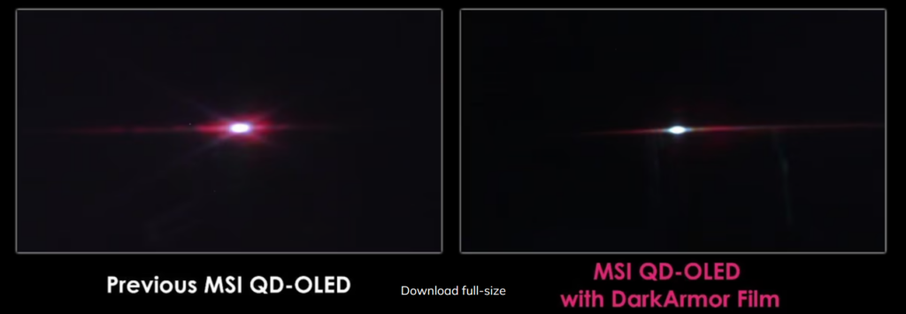 DarkArmor Film: Diese spezielle Folientechnologie wurde entwickelt, um die Lichtabsorption zu verbessern und störende violette oder rötliche Farbstiche zu eliminieren, die bei Standard QD-OLED-Displays unter Umgebungslicht häufig sichtbar sind. Sie verbessert die Schwarzdarstellung um bis zu 40 Prozent und steigert den Kontrast deutlich. Außerdem sorgt die Technologie für eine bessere Bild-Performance. Zusätzlich erhöht sie die Oberflächenhärte des Displays von 2H auf 3H und bietet eine 2,5-mal höhere Kratzfestigkeit.